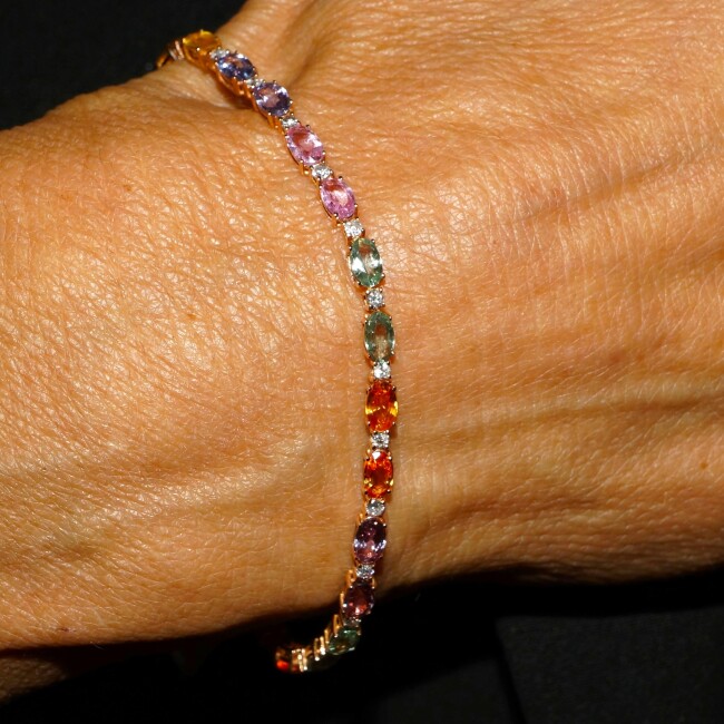 Branar Bracelet Rivière de Saphirs Multi-couleurs et Diamants Or Rose