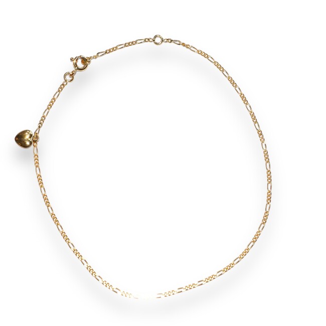 Chaîne de Cheville Breloque Coeur, Or Jaune 25cm