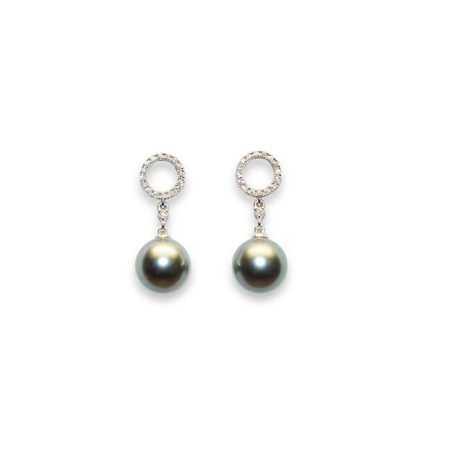 Boucles D’oreilles Perles de Tahiti et Diamants, Or Blanc