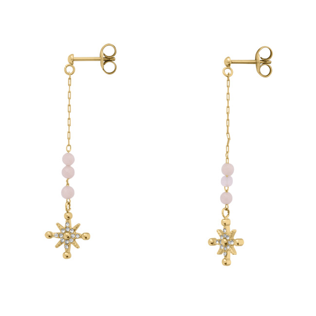 Boucles d'oreilles Pendantes Femme AUSTRALE Acier Doré Perles Roses