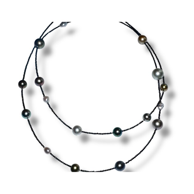 Collier Cordon, Perle de Tahiti & Diamants, Or Blanc
