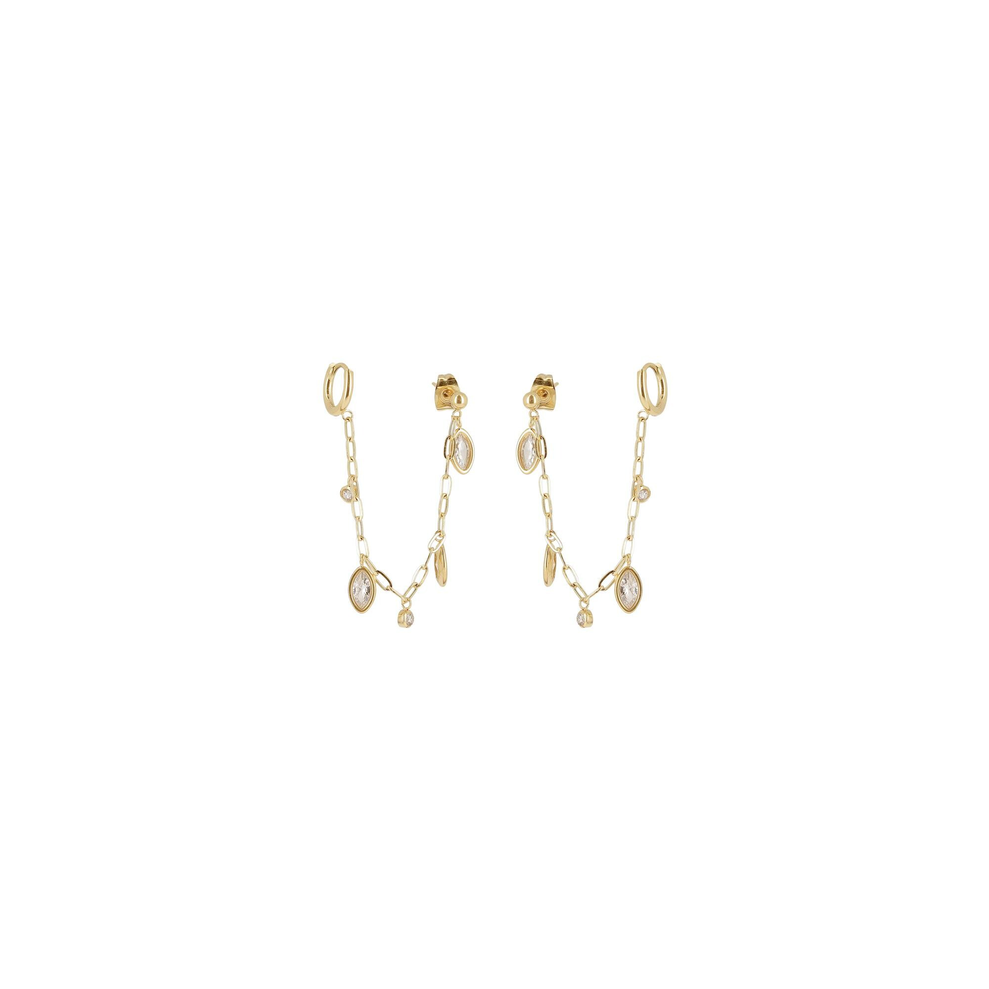 Boucles d'oreilles Zag en acier doré et oxydes de zirconium