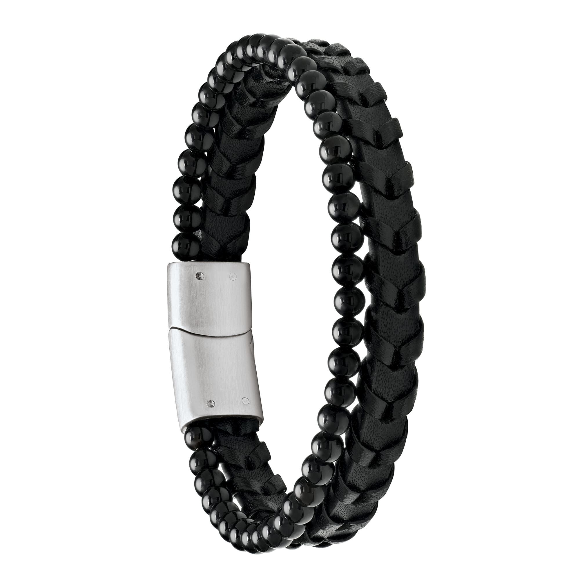 BRACELET LAVE CUIR NOIR ACIER ET ONYX