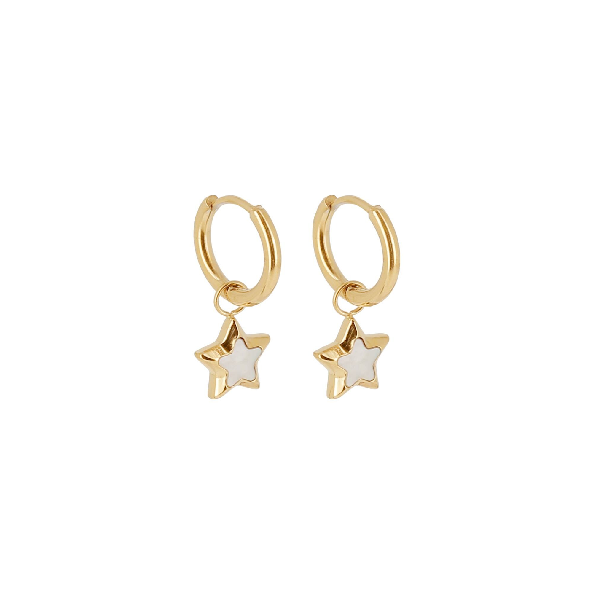 Mini boucles d’oreilles Zag en acier doré et nacre