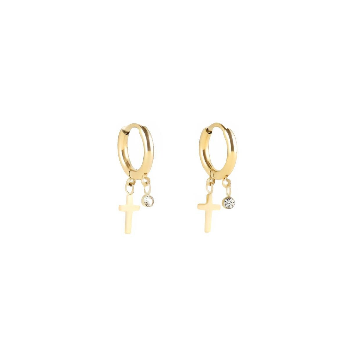 Mini boucles d’oreilles Zag en acier doré et oxyde de zirconium